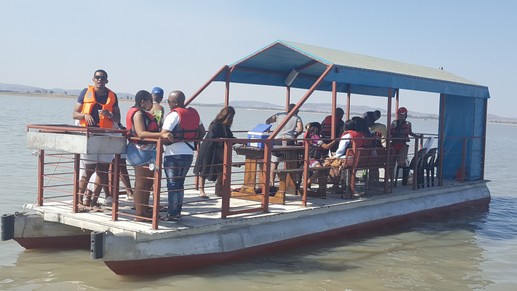 We go past the dam wall so that you can see the gates and pump house. The dam circumferance is +/-980km. so the trip does not have a destination, it is a trip, enjoy nature and view.